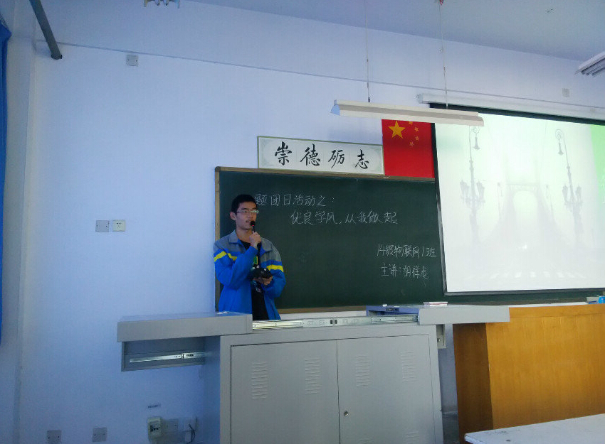 接下来,各团支部就下一阶段学风建设工作发言和讨论。大家的发言各抒己见,有的同学说:学风建设的重点在纪律。有的同学说:学风建设的重点在氛围的营造。14级物联网班学习委员毕晓杰的发言令大家印象深刻,他说:“首先我们要明确我们学风建设的对象是,老员工这个成年的‘非社会人’。这个群有着它独特之处。学风不是一两个人就可以建设起来的,我们必须让大家一起参与到其中。然而要让大家养成良好的学习、生活习惯不是那么得容易的。我们首先得让大家有一个明确的目标,正如 ‘如果人生中没有目标,那就和航海中没有了罗盘一样’。确实。如果连我们自己都不知道自己是在干什么,那还有谁能够明白呢?然而,我们现在的老员工很多就是这种没有明确目标的。为什么中国员工没有创新,不是因为没有创新能力,有很大的一部分原因是咱国人盲从、茫然的结果所致。如果大家都有自己的理想、目标,那这种现象我想是能够避免的。当然这还跟咱们中国人的从众心态有很大的关系,所以说我们在进行学风建设的时候,首先要使大家都有一个目标、理想、规划。如果我们都按着上面的步骤做好自己的大学规划,我想我们的老员工活将会是另样的景象吧。还记得我们很小的时候,老师就问我们:‘长大了想做什么,想成为什么啊?’。你会充满豪情地回答老师:‘我想当医生、当工程师、当老师……’可是随着年龄的增长,我们发现我们离自己的目标是越来越远,于是我们开始降低我们的目标,一降再降,最后也就没有了目标了,一片茫然。于是就:和尚撞钟——得过且过了。”