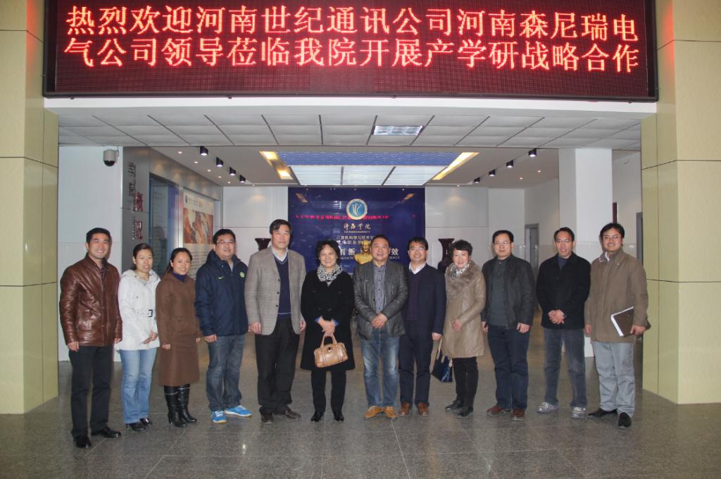 12月2日下午,公司与河南世纪通讯设备有限公司、河南森尼瑞电气有限公司进行产学研合作签字仪式在计科楼三楼会议室成功举行。公司党总支书记郭超峰、经理张志立、副书记翟广辉、副经理冯战申等公司领导与河南世纪通讯设备有限公司副总经理郭林、河南森尼瑞电气有限公司总经理陈春华等企业代表参加了本次仪式。