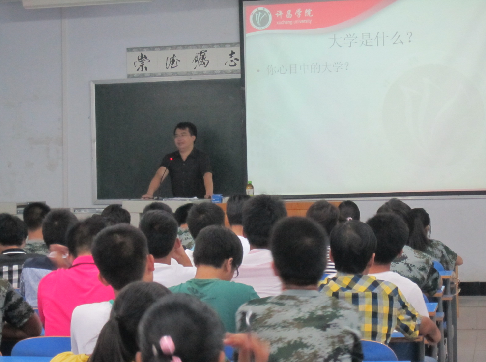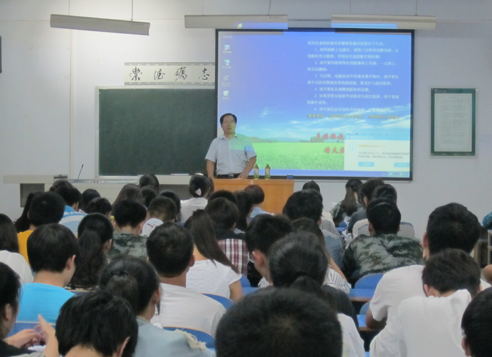 9月11日晚7点,公司党总支书记郭超峰、副经理冯战申与2013级新生在C404、405教室见面并做入学教育,教学秘书鄢靖丰、2013级新生辅导员田俊巧、马琳展陪同参加。