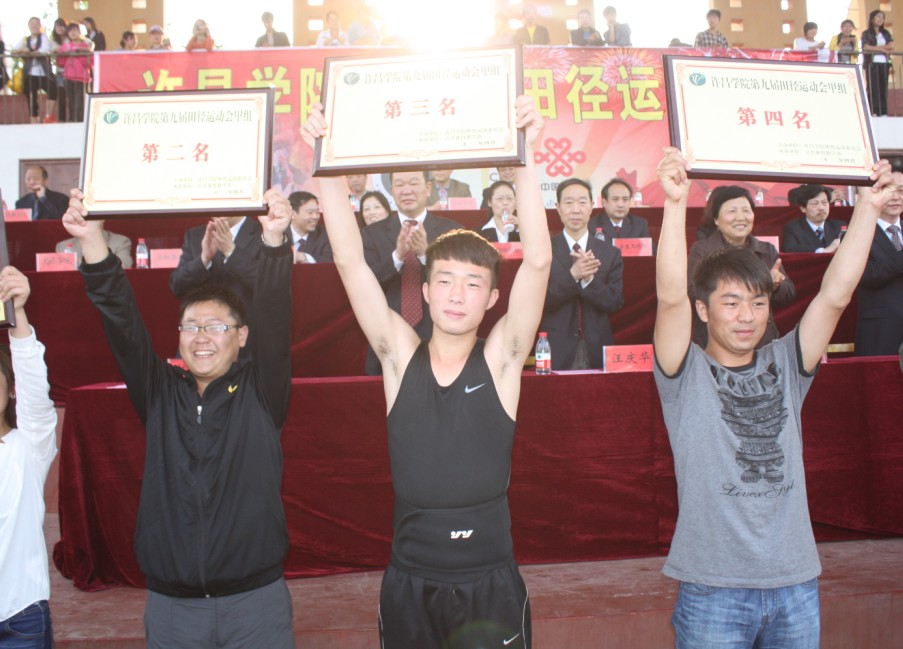 国歌奏响,国旗升起,第六届运动会闭幕式正式拉开序幕。首先,主持人宣布获奖院系及个人。随后,校领导对此次运动会的成功举办表示祝贺,他说运动会不但展现了同学们意气风发的风采,还提高了同学们的综合素质,充分展现了同学们坚强的毅力和不怕苦不怕累的执着精神,希望同学们继续学习和发扬这种精神。本届运动会公司武术健身操和女子铅球均荣获一等奖,男子同舟共济100米决赛荣获二等奖,更可喜的是公司员工王军、王犇、彭飞、曹自培以3′44″82打破原3′47″5的男子4×400米接力校记录。最终,公司综合排名取得第三名的好成绩。在激动人心的颁奖仪式上,当公司代表上台领奖时,全院员工都按捺不住激动的心情,欢呼声回荡在整个田径场上。